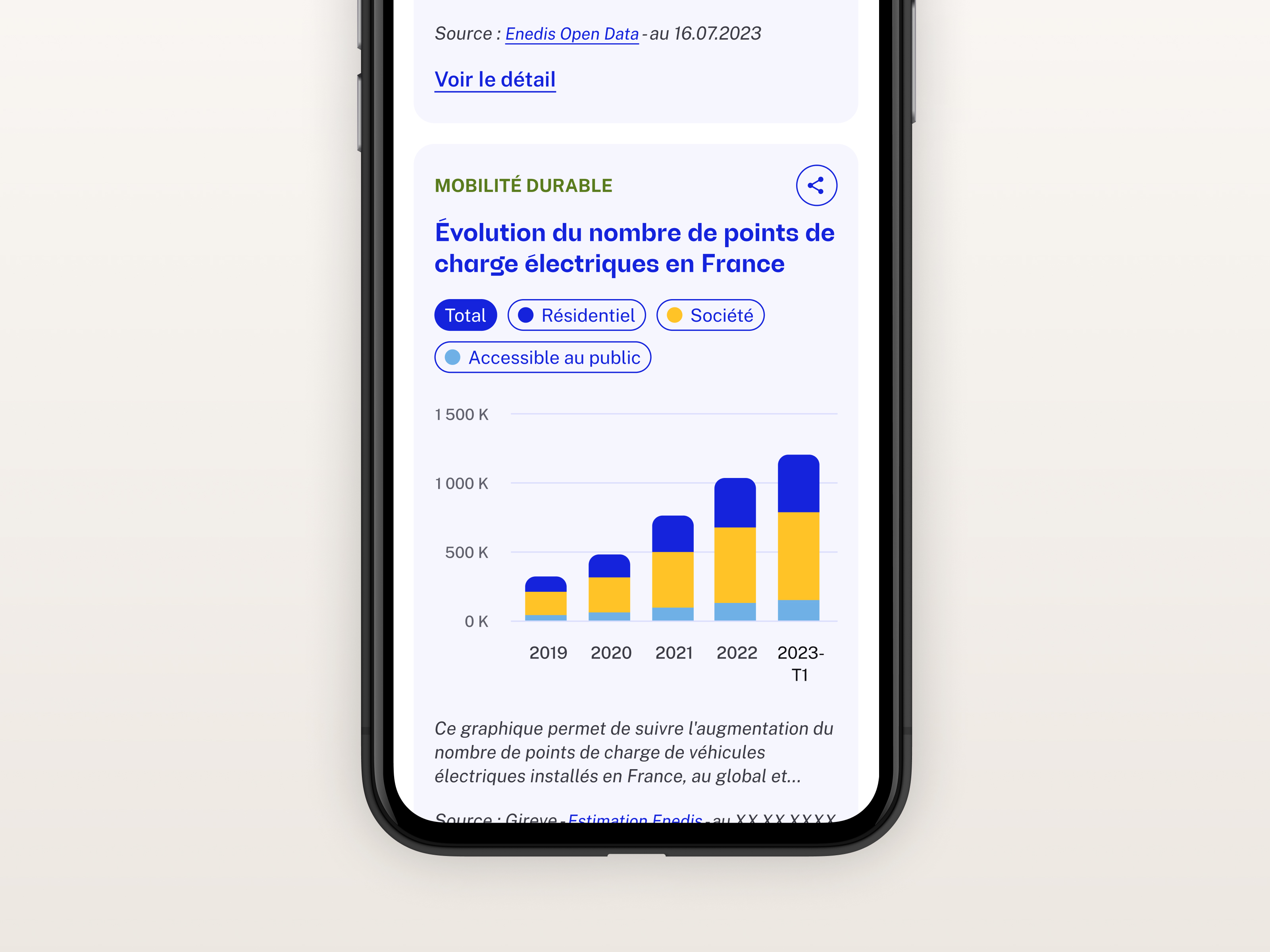 Enedis souhaitait rendre plus accessibles les données sur la transition énergétique en France via l’Observatoire Français de la Transition Écologique. Le site existant était peu ergonomique et ne permettait pas de mettre en valeur la richesse des informations disponibles, notamment les données locales. La refonte visait à améliorer la lisibilité, structurer le contenu et proposer une expérience claire et engageante pour tous les publics.