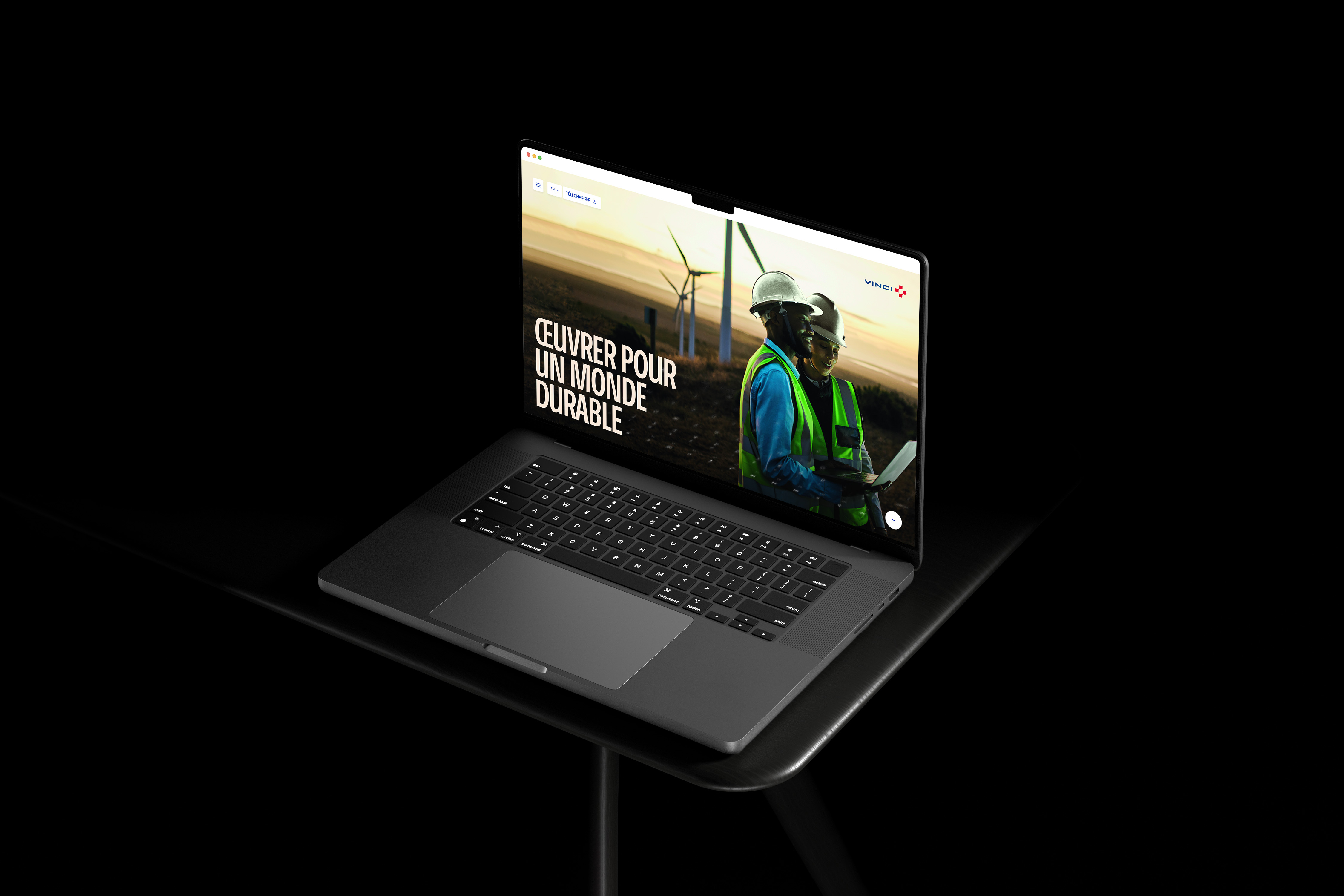 Le Rapport Annuel Intégré (RAI) de Vinci est un document stratégique qui présente les résultats, engagements et perspectives du groupe. L’enjeu était de transposer ce contenu dense vers une version digitale engageante et moderne, tout en respectant l’identité visuelle de Vinci.