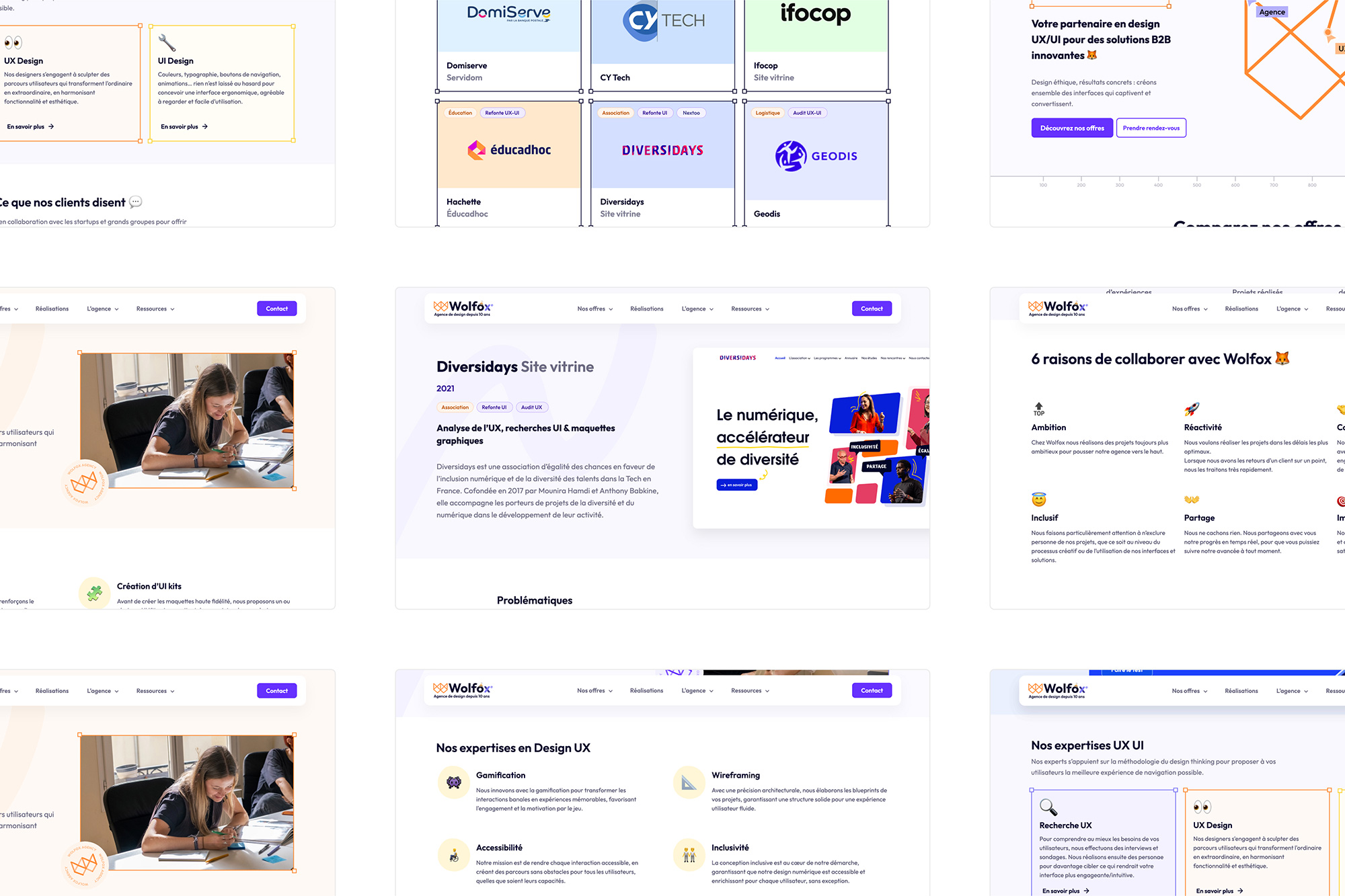 Wolfox est une agence d’UX/UI design spécialisée dans les produits B2B et engagée en faveur d’un design éthique. Pour affirmer son positionnement et gagner en visibilité, l’agence souhaitait une identité visuelle forte et un site web reflétant à la fois son professionnalisme et sa créativité.
